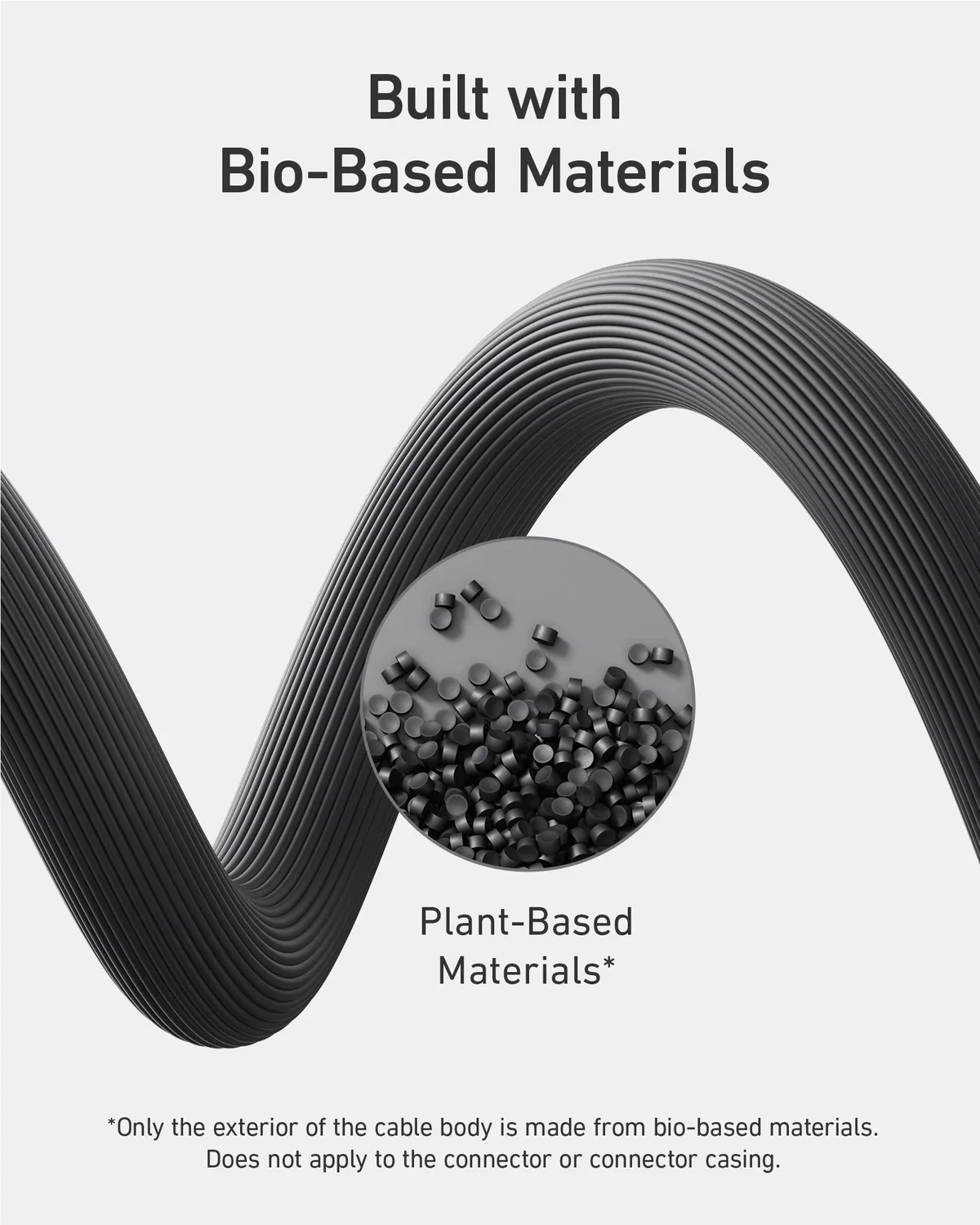 The exterior of bio_based cables is around 40% composed of a proprietary mixture of plant_ased materials.
