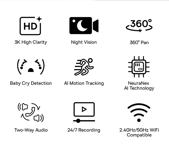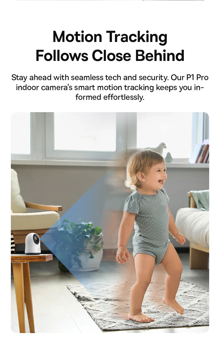 Capture every detail with the Baseus Security P1 Pro Indoor 3K Wi-Fi Camera, designed to provide ultimate peace of mind for your home. With an impressive 2880*1620 (5MP) resolution, this camera ensures crystal-clear visuals, whether you’re monitoring your pets, children, or indoor spaces.