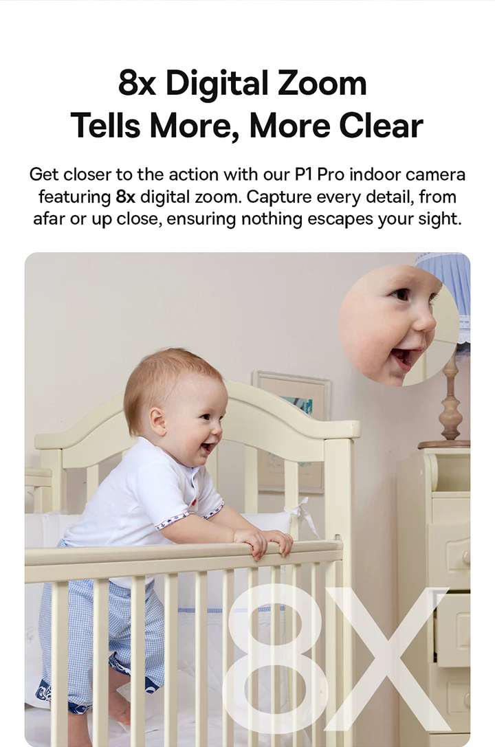 Reliable Night Vision and Digital Zoom: Enjoy color night vision for low-light monitoring and utilize the 8x digital zoom to focus on intricate details, ensuring nothing escapes your view.