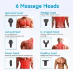 The massage gun features a built-in heating plate and can be paired with a heated massage head.